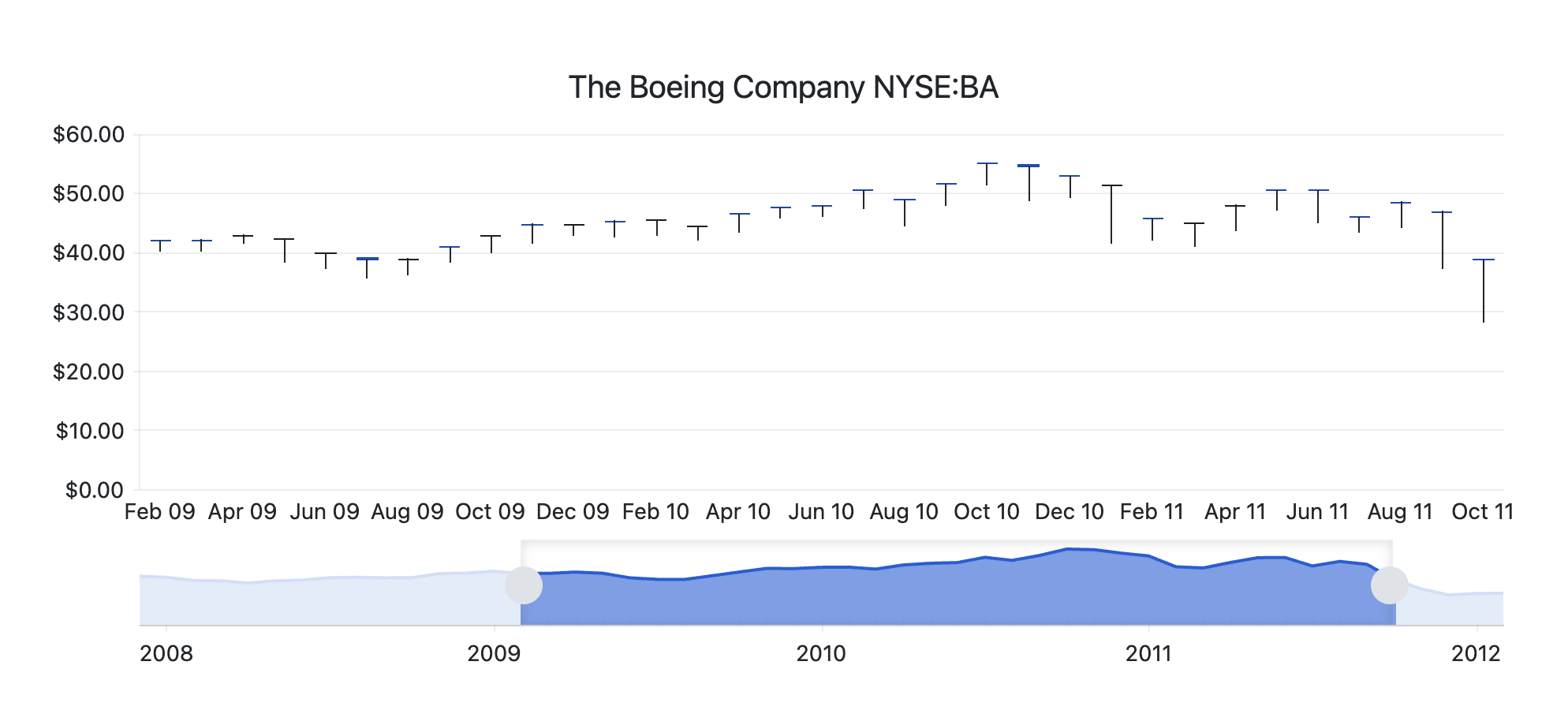 The built-in panning and zooming features are intuitive and allow end-users to focus on a specific segment of the data or to change the displayed range. You can enable these functionalities of the KendoReact Charts library by using the pannable and zoomable options. Read more about panning and zooming...