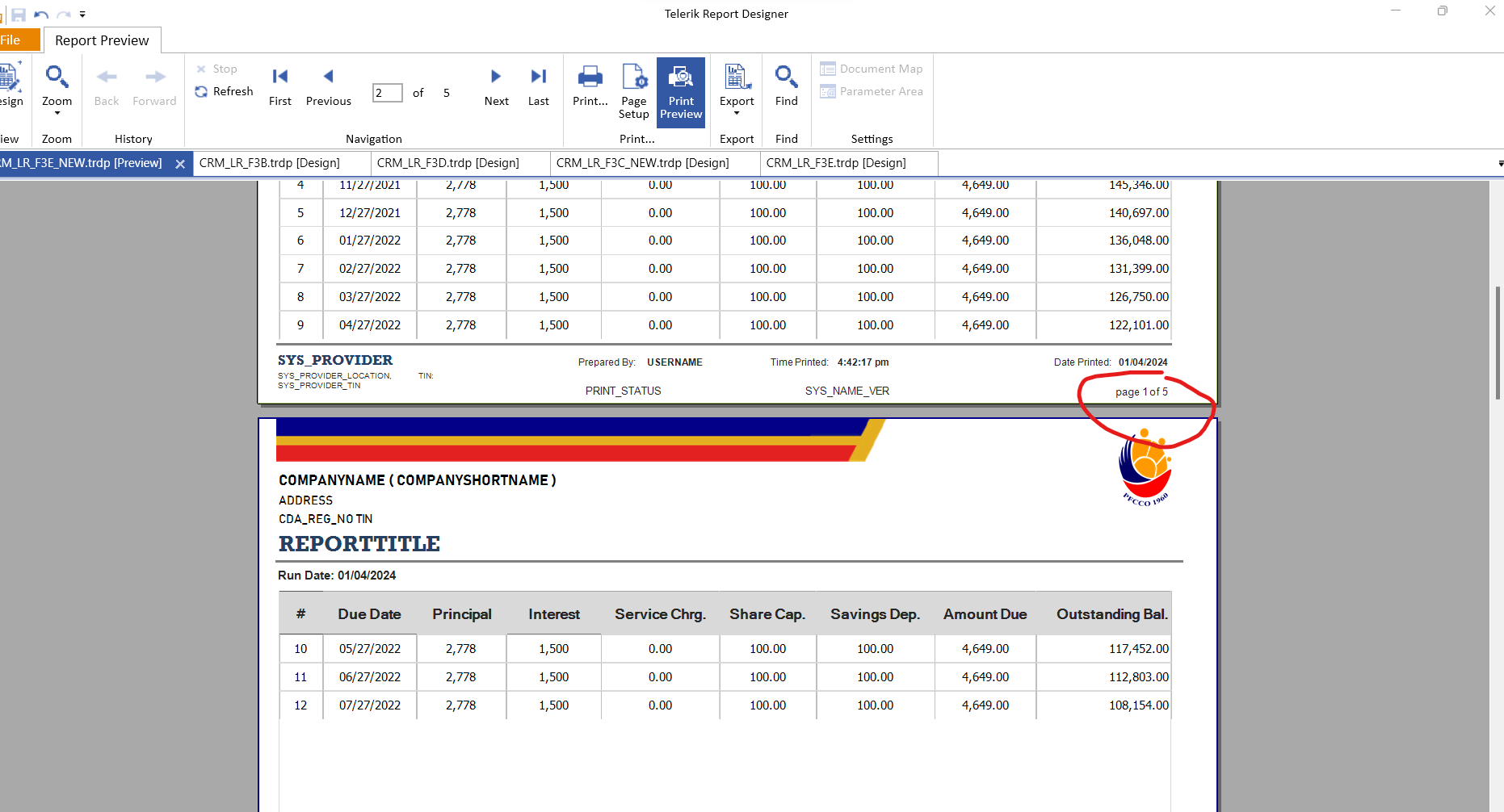 Hello, I encountered a problem when printing a report. Some rows of the table skip to print continuously instead it prints to the next page, notice the red circle, it has 5 pages yet in 2nd page, the table row didn't continue to print instead the next row printed to the next page which leave a huge blank space under the row (#) 12.
