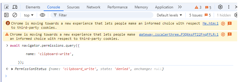 Our test application use java script navigator.clipboard.writetext to copy content into clipboard, when we run cases with telerik 2024, some scenario pops error "fail to copy", the exception for java script is "NotAllowedError: Failed to execute 'writeText' on 'Clipboard': Write permission denied.".