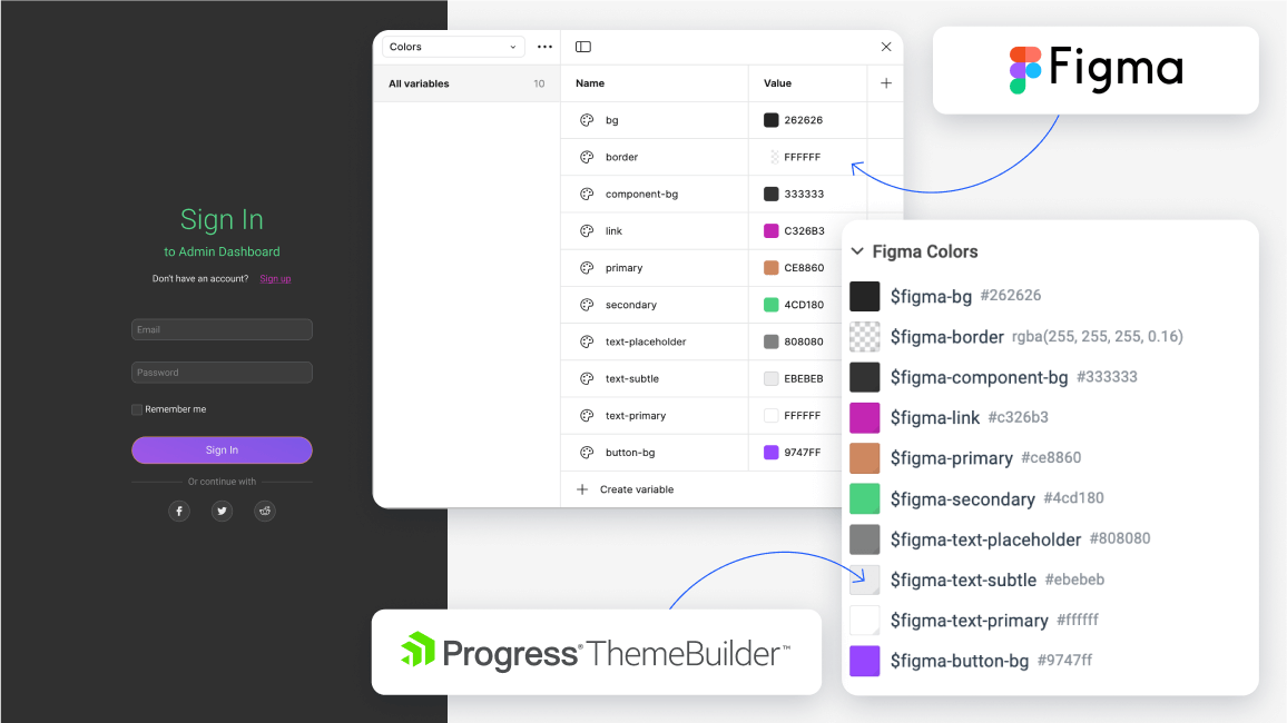 Built for designers and developers who want design fidelity without the rework. Bring your Figma tokens straight into ThemeBuilder and preview them on real components - your design system becomes your production theme automatically. Adjust visually or with AI, then export clean, ready-to-use CSS.