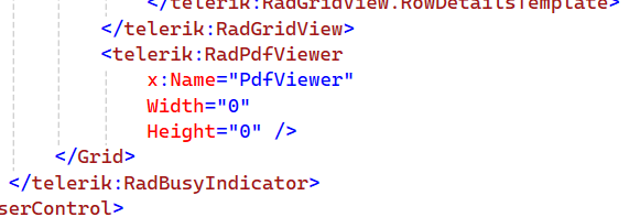 We are using WPF with Prism, MEF, and Telerik controls (PdfViewer and GridView, version 2017.2.503.45). Our application loads multiple tab views dynamically using the MVVM pattern. Each view contains multiple Telerik controls, and their data is bound from the ViewModel.