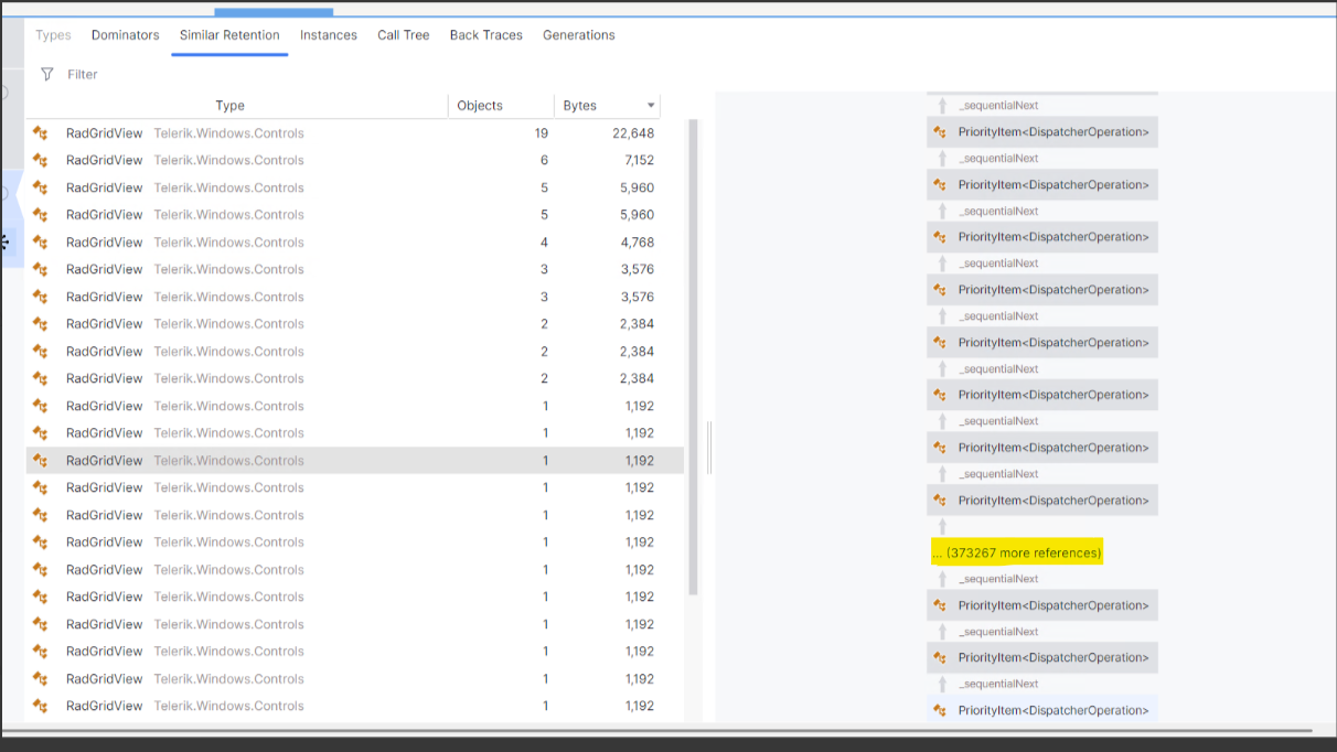Is this large number of PriorityItem<DispatcherOperatio> which is more than 373K normal in RadGridView? Why is this happening? Is there anyway to stop the propertyChangedCheckerTimer created by default in RadgridView?