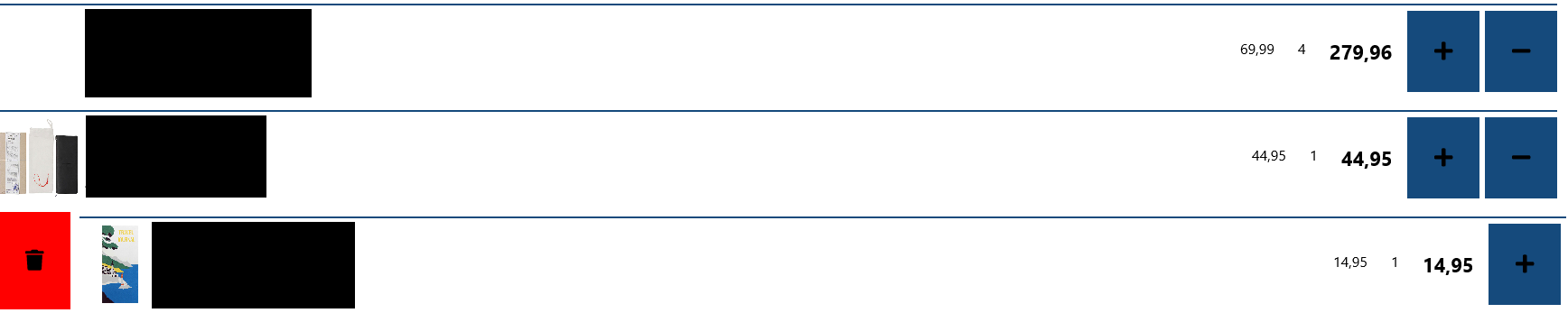 We use a Radlistview to show a series of items with prices and a +/- to change the amount. We have made those items swipeable, so the user can easily swipe those items away to delete them. See example below (sensitive information is censored):